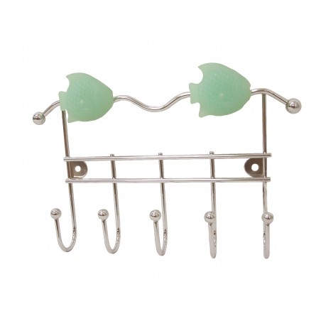 PERCHA QUINTUPLE METAL BAÑO PEZ VERDE