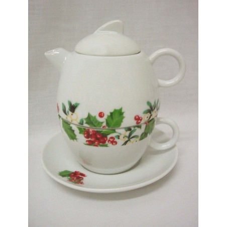 TAZA PLATO TETERA 180ML ACEBO BLANCO