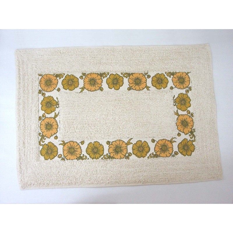 ALFOMBRA BAÑO ALGODON FLORES NARANJA