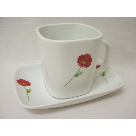 TAZA PLATO RECTA 300ML AMAPOLA ROJA