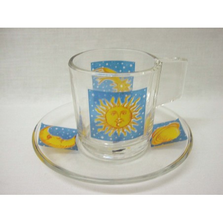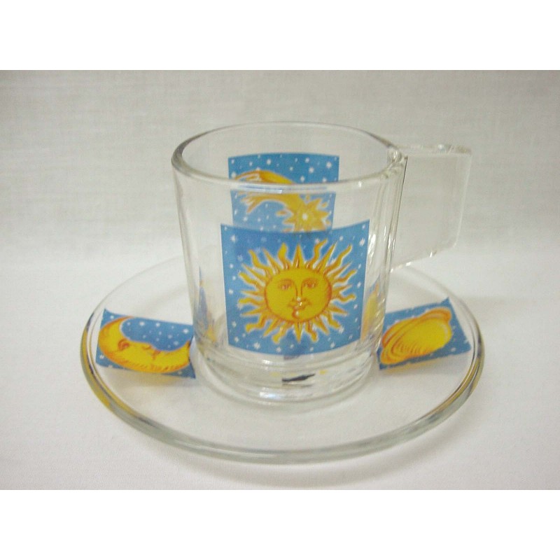 TAZA Y PLATO CRISTAL 120ML ASTROS AZUL