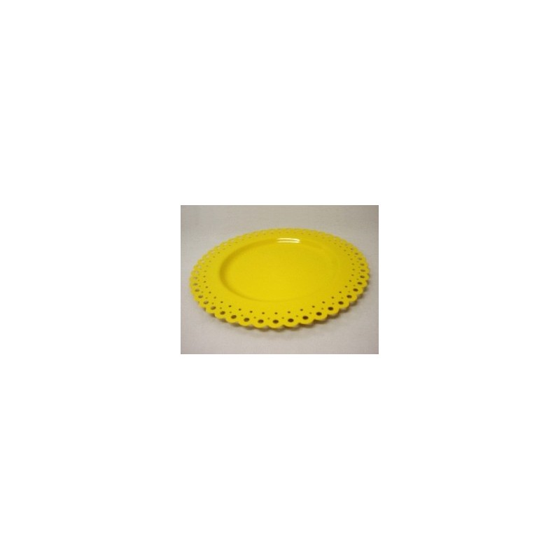 BAJOPLATO METAL REDONDO CALADO AMARILLO