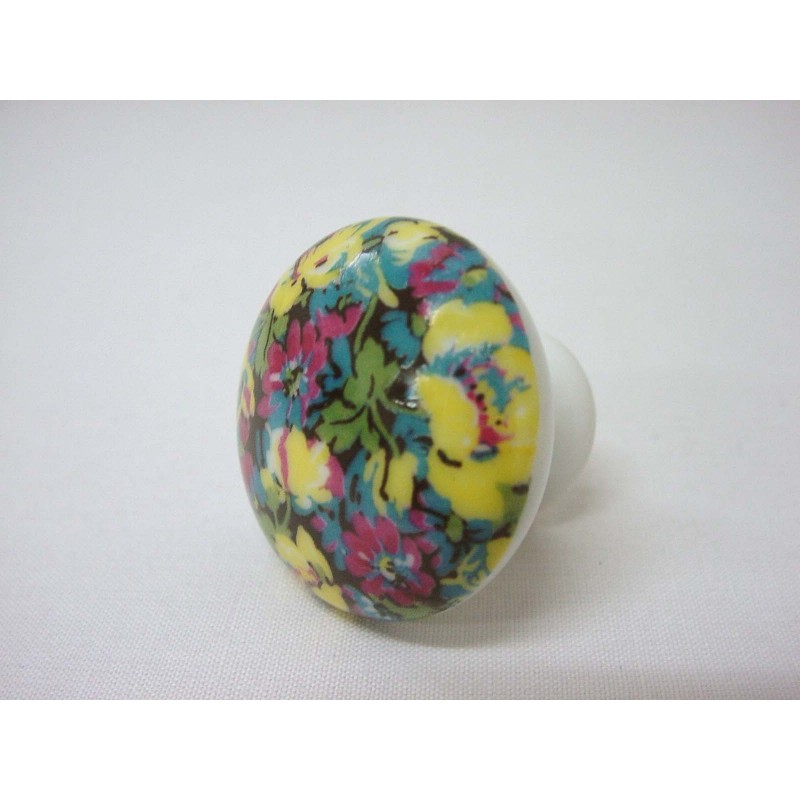 POMO PORCELANA GRANDE FLORES AZUL-AMARILLO