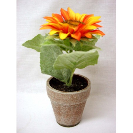 MACETA CON FLOR GIRASOL NARANJA AMARILLO