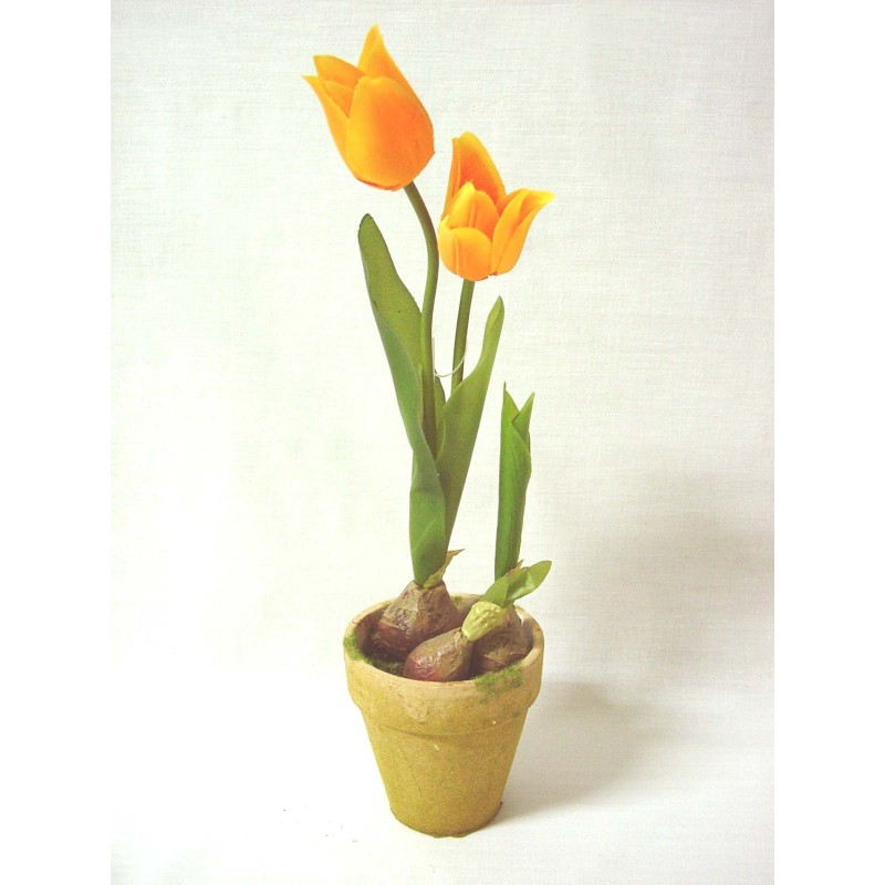 CENTRO MACETA FLORES TULIPANES NARANJA