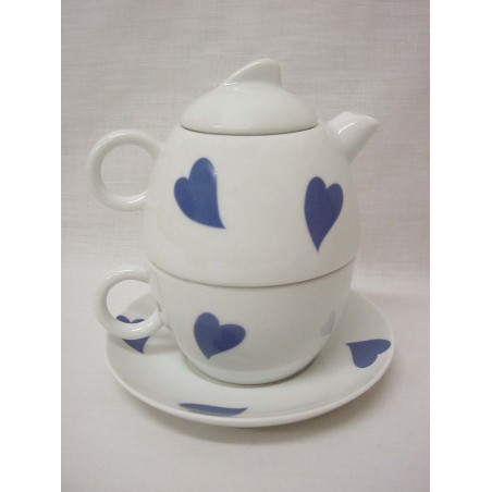TAZA PLATO TETERA 180ML CORAZON AZUL