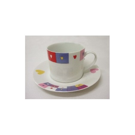 TAZA Y PLATO TE PORCELANA CORAZON COLORES