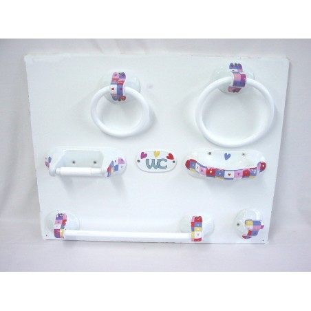 JUEGO 7 PIEZAS BAÑO CORAZON COLORES