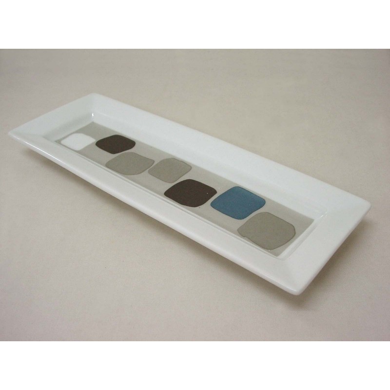 BANDEJA ALARGADA BORDE CUADROS GRIS