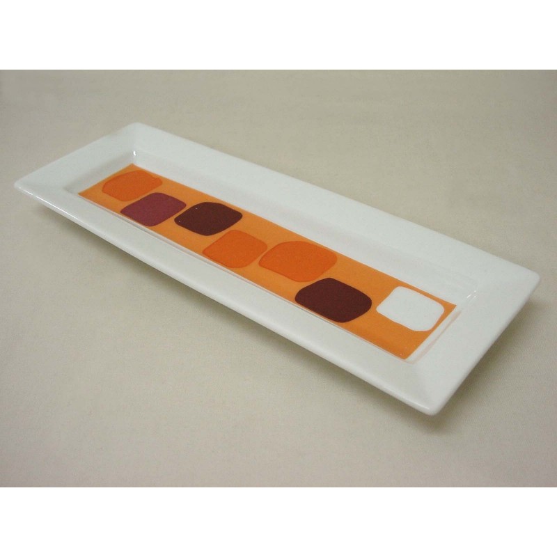 BANDEJA ALARGADA BORDE CUADROS NARANJA