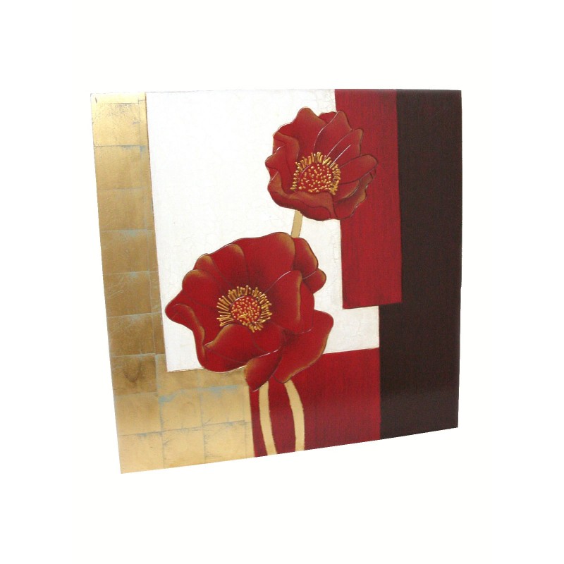 CUADRO MADERA GRUESO FLOR ROJO DORADO