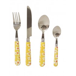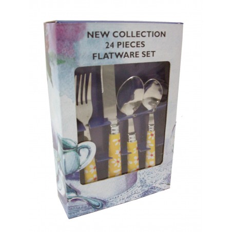 CUBERTERIA 24 PIEZAS FLORES AMARILLO-BLANCO