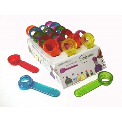 Gracias a su doble cavidad permite abrir sin esfuerzo la mayoría de las garrafas de 5 lts, botellas de 2, 1´5 y 1 lts, así como refrescos,agua y otros de 0´5 y 0´33 lts. Ideal para personas con dificultades en las manos. Abrebotes perfecto para personas con artritis y personas mayores. Fabricado en plástico ABS muy resistente. Fabricado en España. Patente Europea.