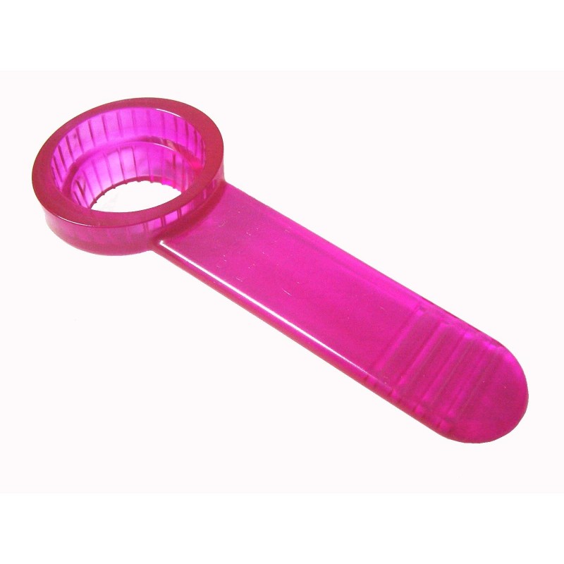 Gracias a su doble cavidad permite abrir sin esfuerzo la mayoría de las garrafas de 5 lts, botellas de 2, 1´5 y 1 lts, así como refrescos,agua y otros de 0´5 y 0´33 lts. Ideal para personas con dificultades en las manos. Abrebotes perfecto para personas con artritis y personas mayores. Fabricado en plástico ABS muy resistente. Fabricado en España. Patente Europea.
