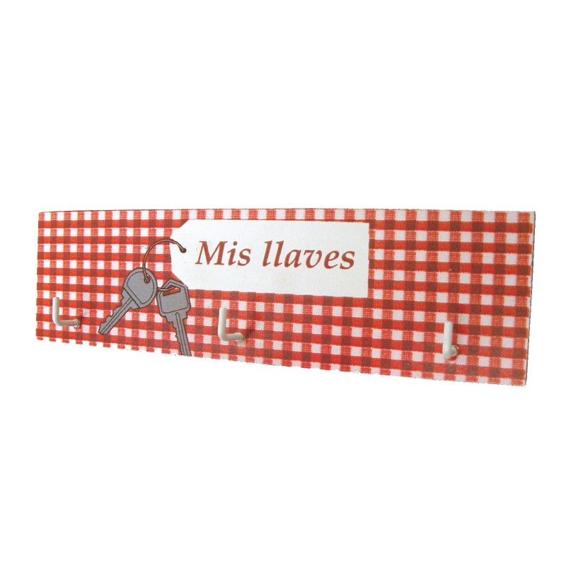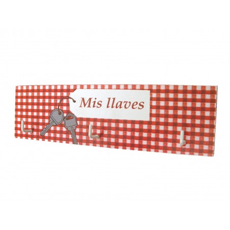 CUELGALLAVES TABLA MADERA VICHY ROJO