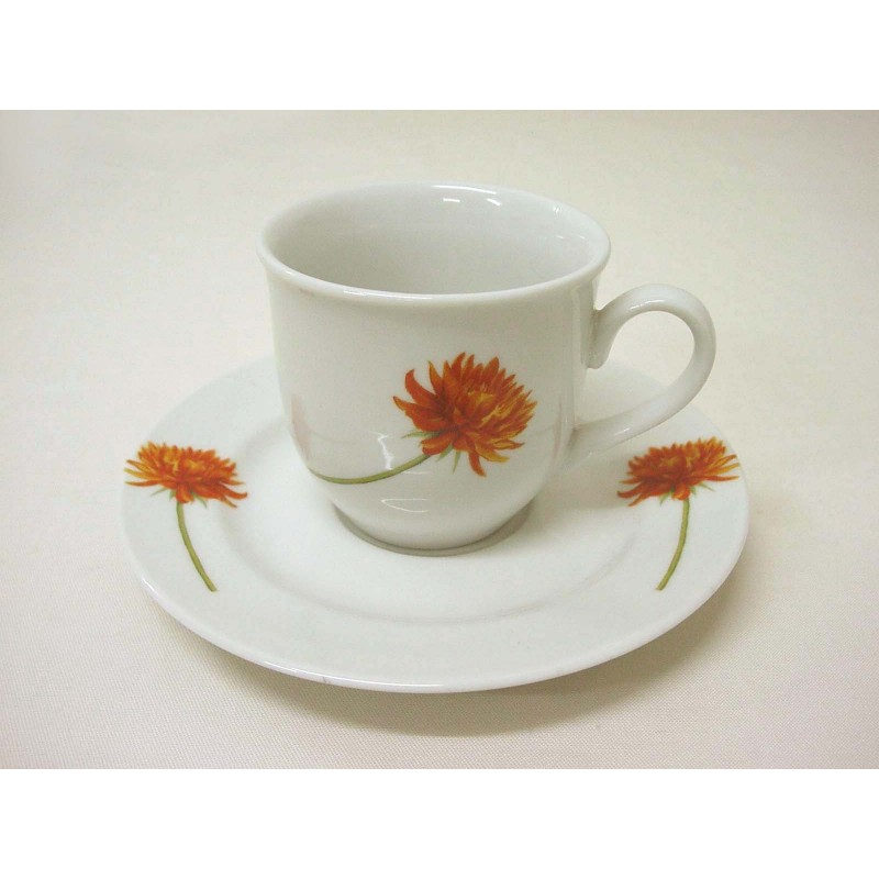 TAZA Y PLATO CAFE 130ML DALIA ROJA