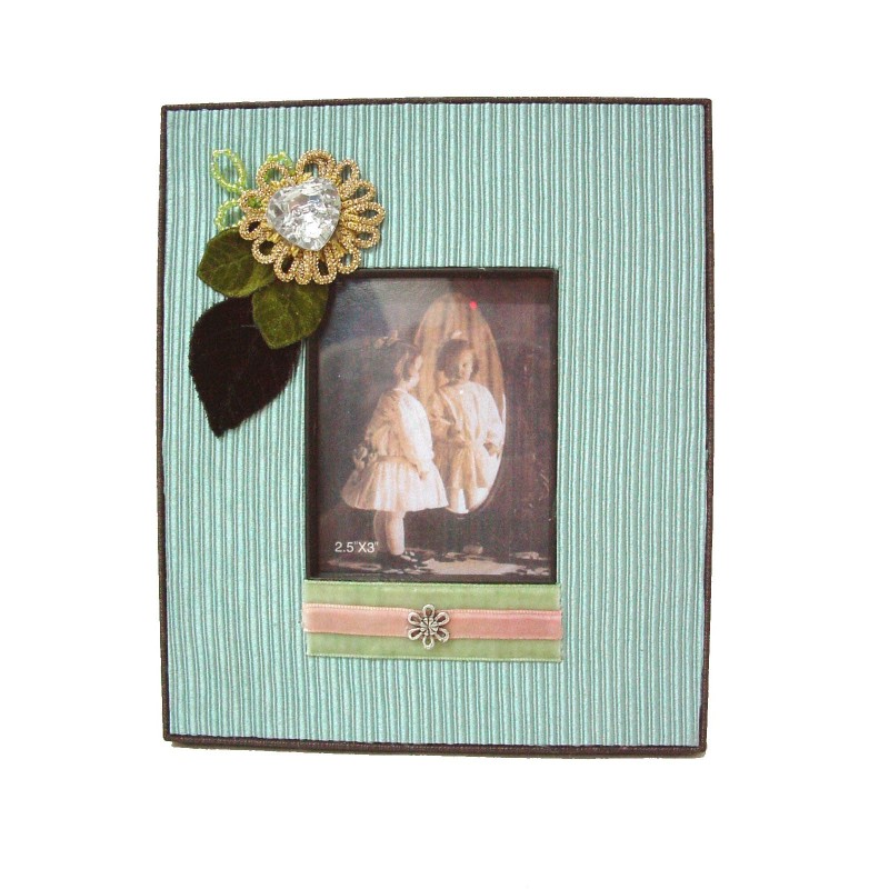 PORTAFOTOS TELA RAYAS VERDE CLARO PARA FOTO 7X8 CM