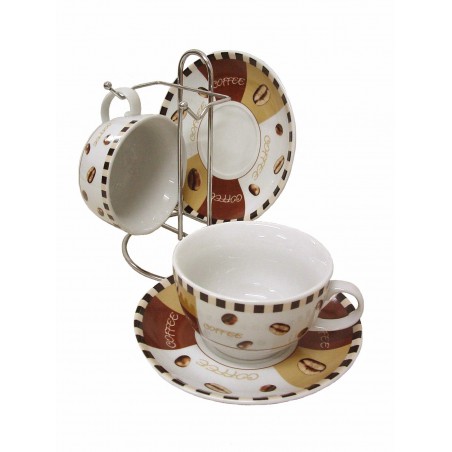 SOPORTE 2 TAZAS PLATO 280ML GRANOS CAFE