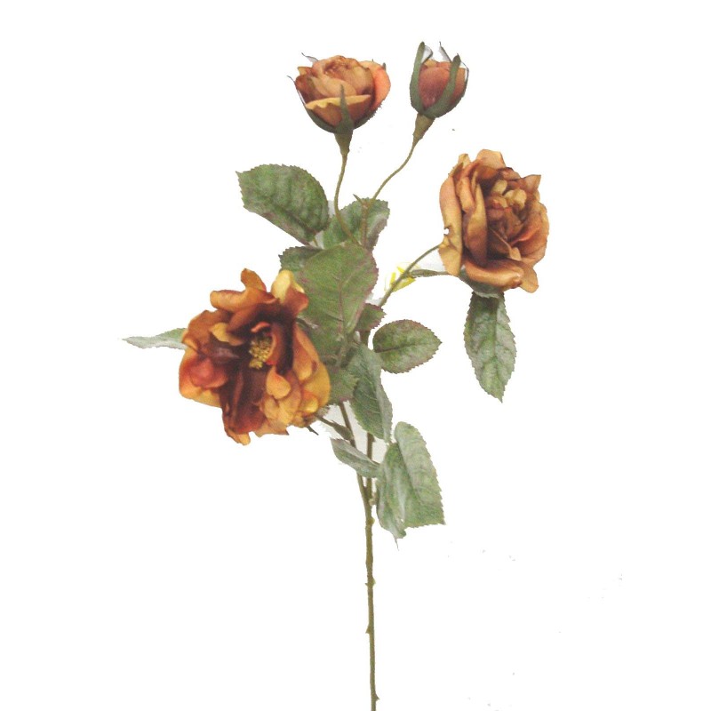 FLOR HOJAS CUADRUPLE ROSA MARRON