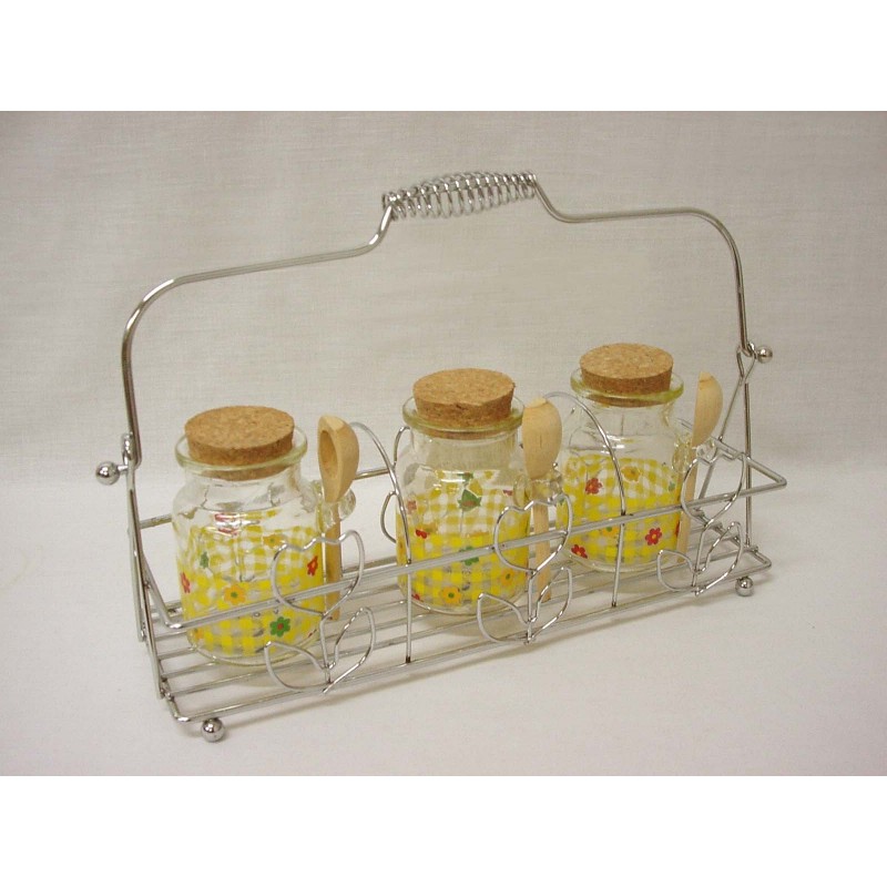 SOPORTE CROMADO 3 BOTES FLOR VICHY AMARILLO