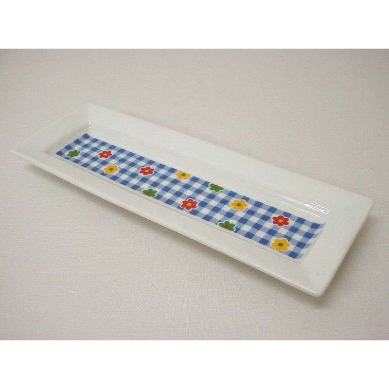 BANDEJA BAÑO ALARGADA FLOR VICHY AZUL