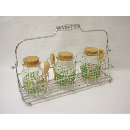 SOPORTE CROMADO 3 BOTES FLOR VICHY VERDE