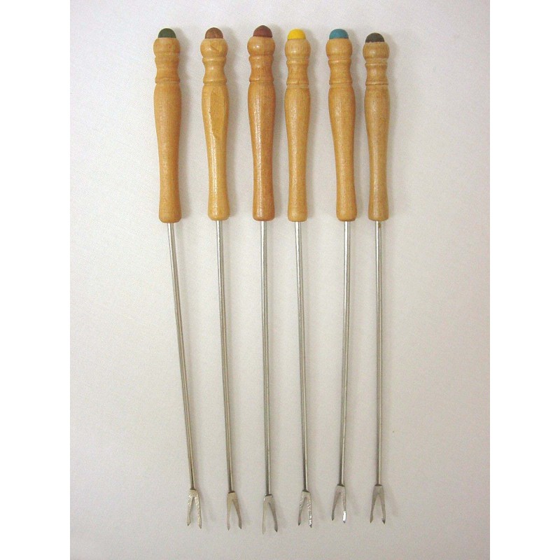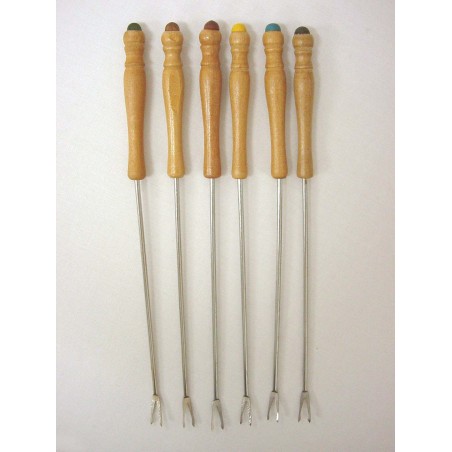 JUEGO 6 PINCHOS FONDUE MADERA CLARO