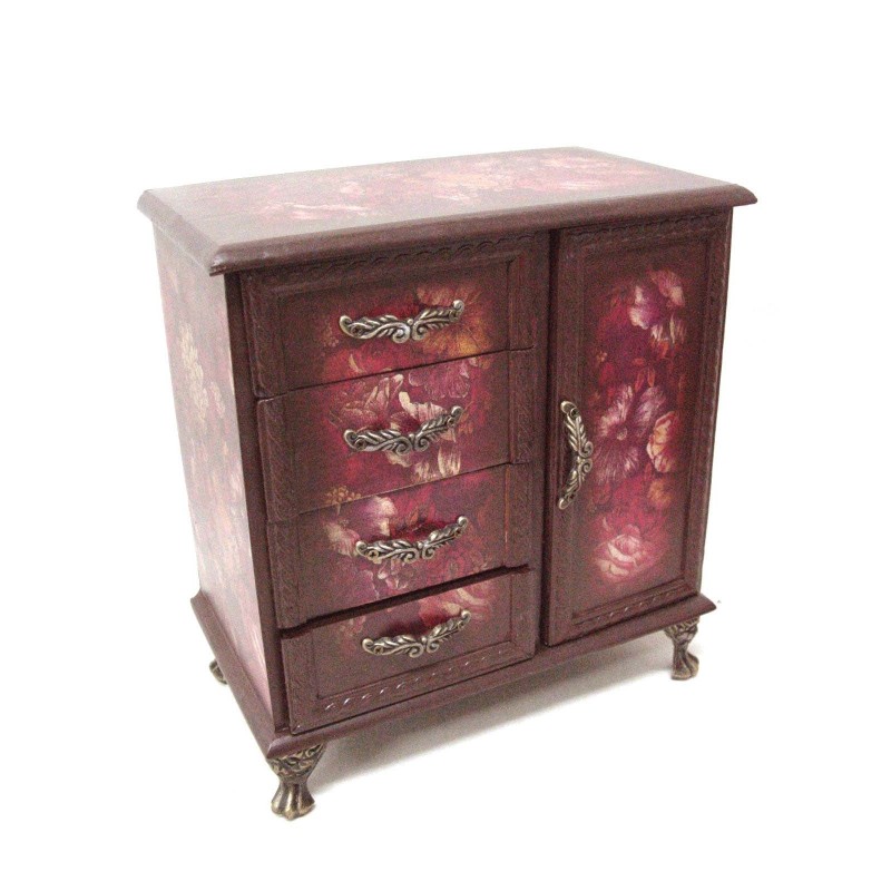 JOYERO 4 CAJONES PUERTA FLORES ROJAS