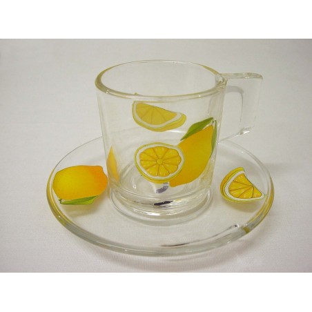 TAZA Y PLATO CRISTAL 120ML LIMONES