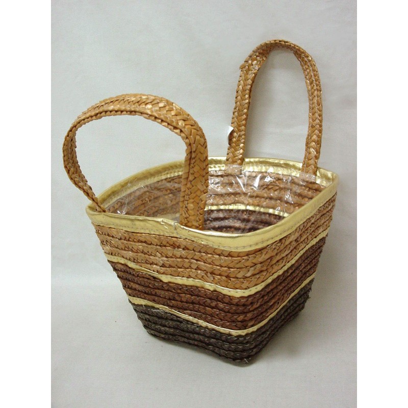 MACETERO CESTA CUADRADA GRANDE DORADO