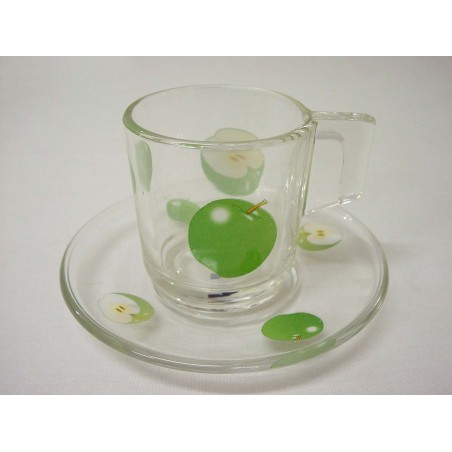 TAZA Y PLATO CRISTAL 120ML MANZANA VERDE