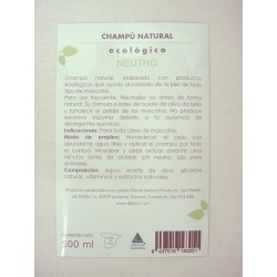 Champú natural, elaborado con productos ecológicos que ayuda al cuidado de la piel de todo tipo de mascotas. Para uso frecuente. Neutraliza los olores de forma natural. Su fórmula a base de aceite de oliva da brillo y fortalece el pelaje de las mascotas. Indicaciones: Para toda clase de mascotas.