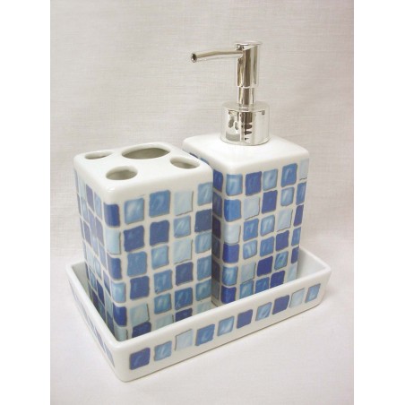 JUEGO BAÑO 3 CEPILLOS MOSAICO AZUL
