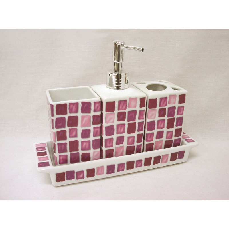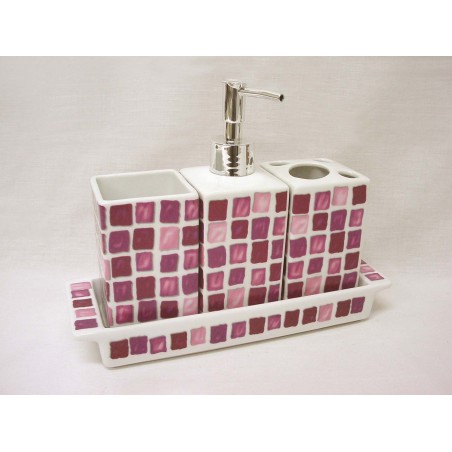 JUEGO BAÑO 4 PIEZAS ALAS MOSAICO MALVA