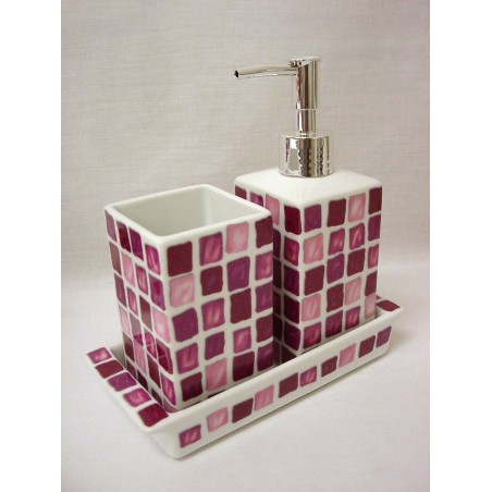 JUEGO BAÑO 3 VASO ALAS MOSAICO MALVA