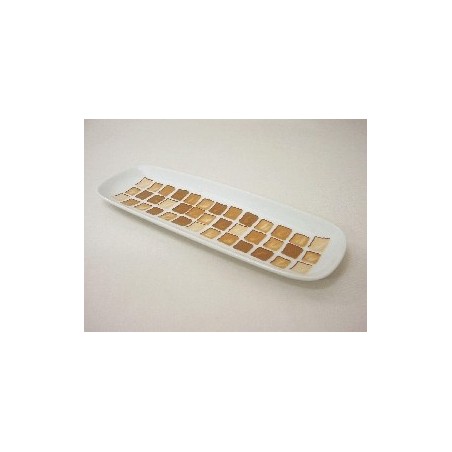 BANDEJA ALARGADA BORDE MOSAICO MARRON