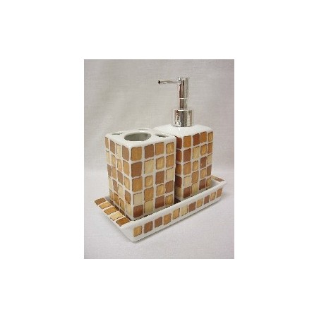 JUEGO BAÑO 3 CEPILLOS ALA MOSAICO MARRON