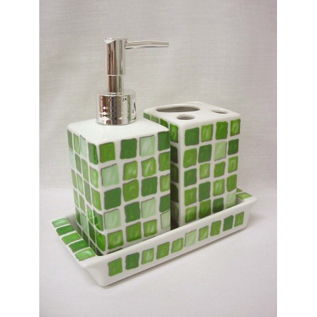 JUEGO BAÑO 3 CEPILLOS ALA MOSAICO VERDE