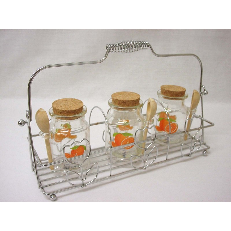 SOPORTE CROMADO 3 BOTES NARANJAS