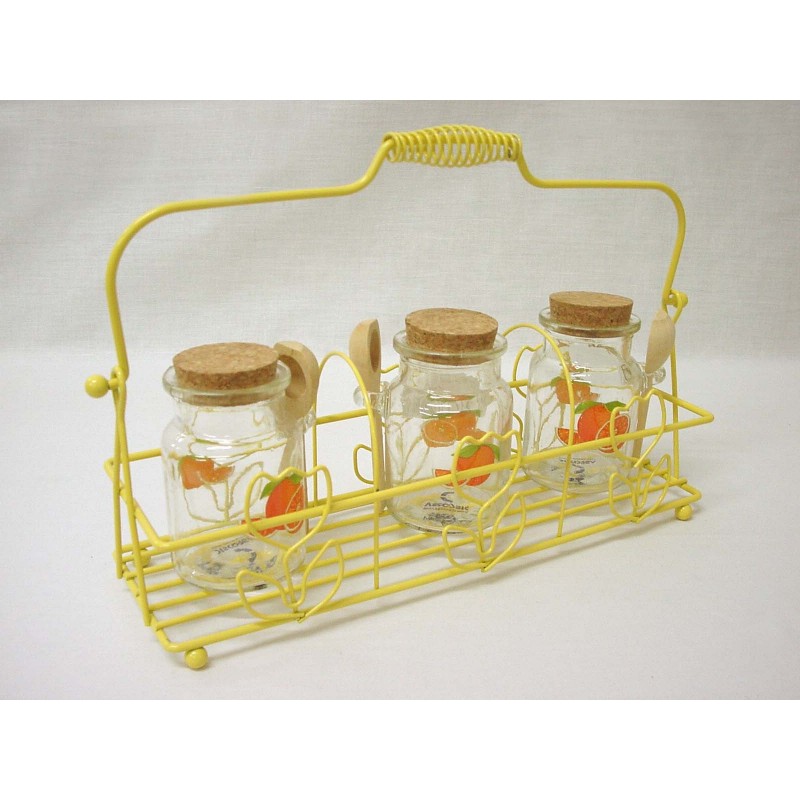 SOPORTE AMARILLO 3 BOTES NARANJAS