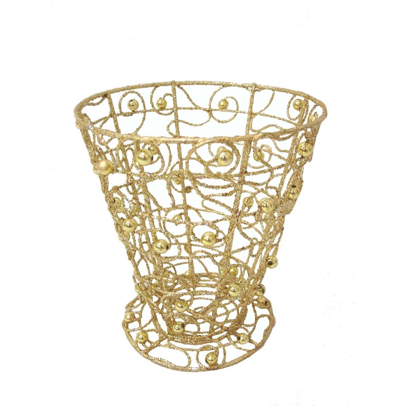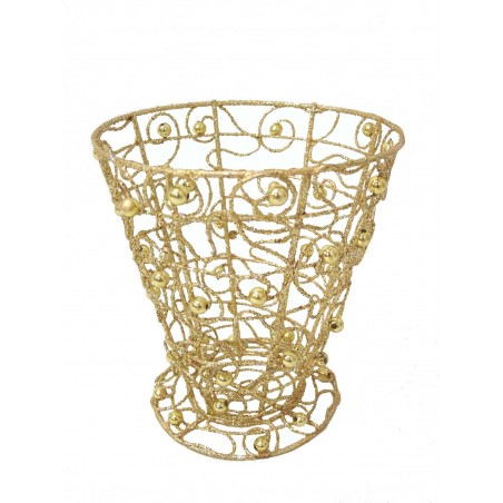 CESTO CON PIE NAVIDAD DORADO BRILLANTE
