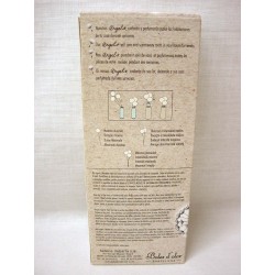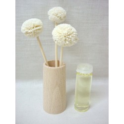 Sencillo de utilizar: sumergir los tallos de las flores cuidadosamente en el perfume e introducir la botella en el embellecedor de madera.
