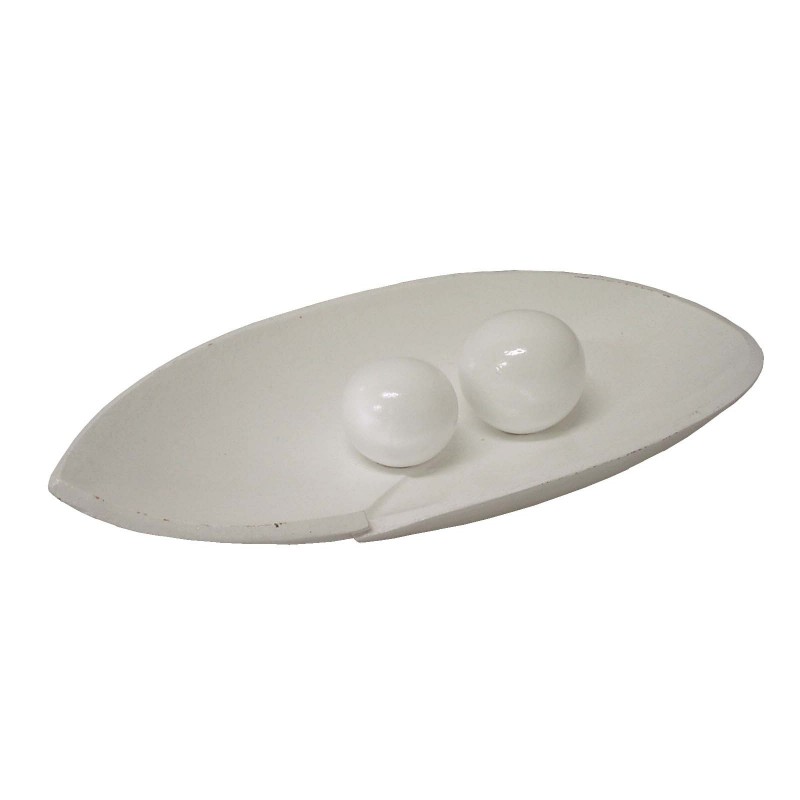 CENTRO HOJA DOS BOLAS CERAMICA BLANCO