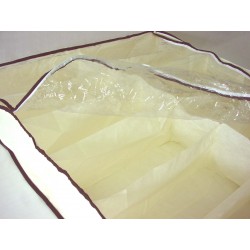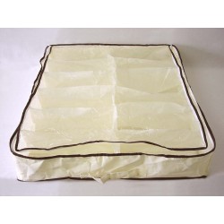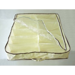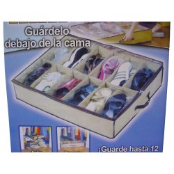 Guarda zapatos especial para debajo de la cama o en la base del armario. Guarda, protege y clasifica hasta 12 pares. Transparente, con cómodos separadores interiores y cierre cremallera. Con asas para facilitar su transporte. Con separadores interiores. Es ligero, duradero y se abre a tamaño completo