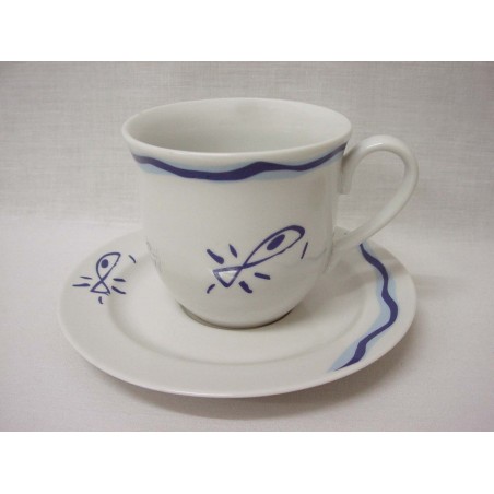 TAZA Y PLATO TE 250ML OLAS PECES AZUL