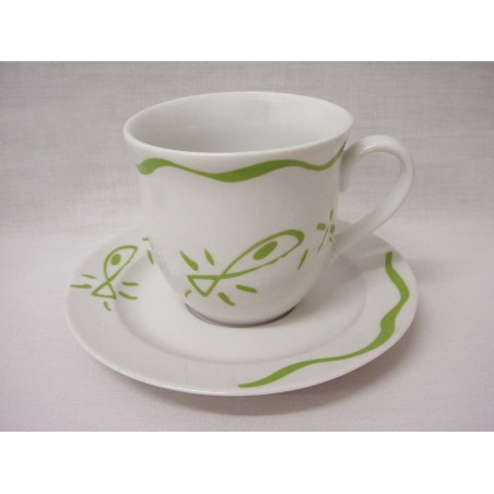 TAZA Y PLATO TE 250ML OLAS PECES VERDE