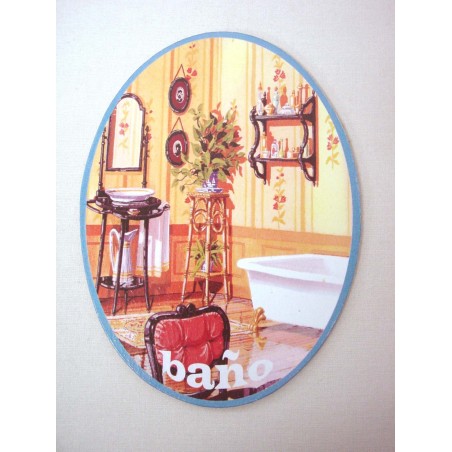 PLACA MADERA OVAL BAÑO BAÑERA LAVABO
