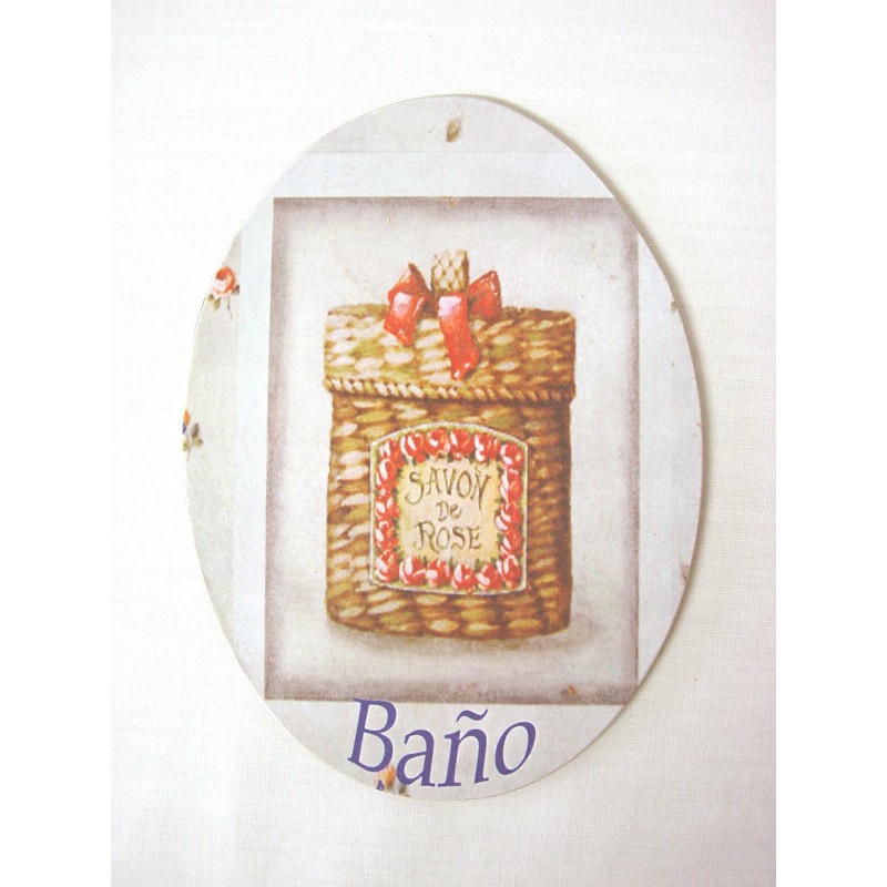 PLACA MADERA OVAL BAÑO CESTO MIMBRE
