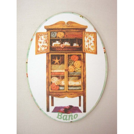 PLACA MADERA OVAL BAÑO ARMARIO TOALLA