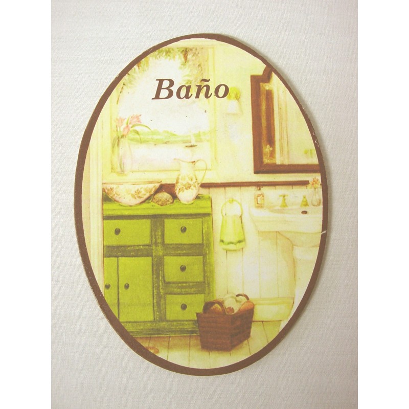 PLACA MADERA OVAL BAÑO MUEBLE VENTANA